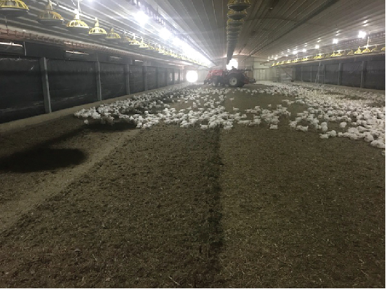 Spoilt bedding removed from broiler farms